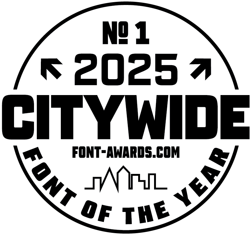 This is a small 2.5-inch circular sticker to honor the winner of the 2025 Citywide Font Awards.